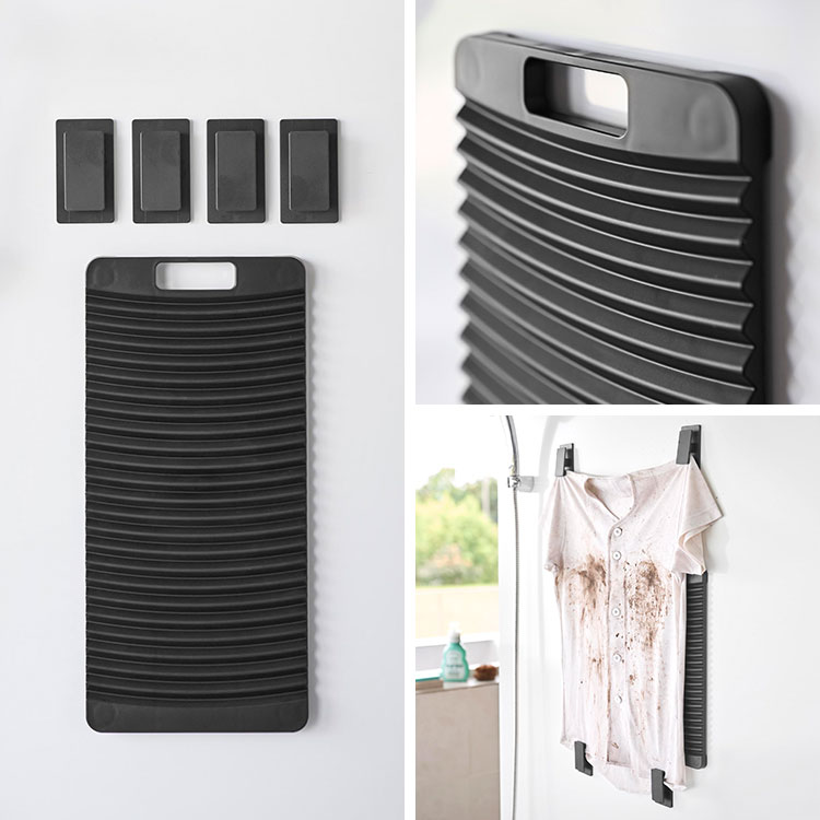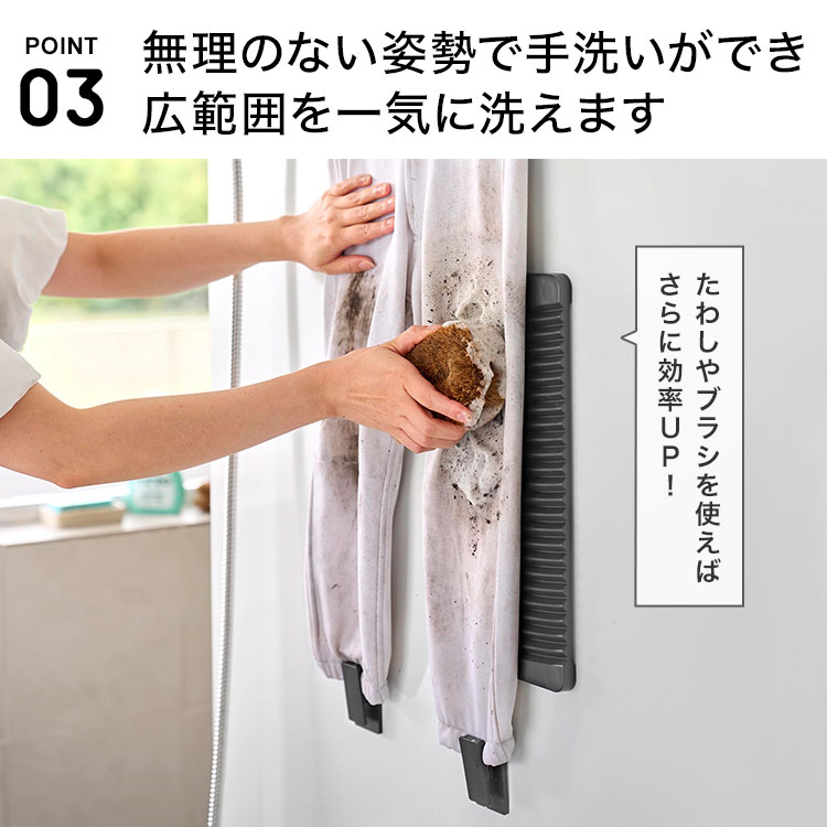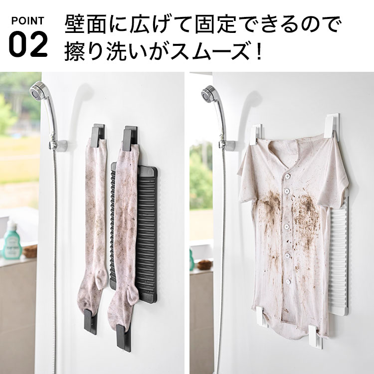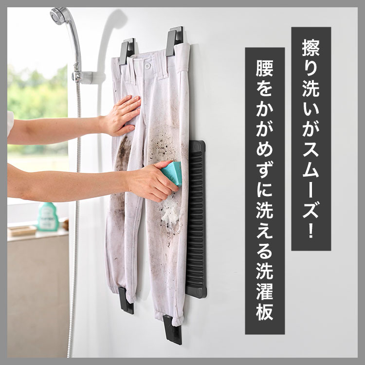 浴室の壁に貼り付けるマグネット式 腰をかがめずラクにゴシゴシ 泥汚れを効率オフするマグネット洗濯板 泥だらけユニフォームを立ったままスッキリ洗浄 泥汚れ、部活ユニフォーム、作業着の前洗いに シンプルで洗面所になじむtowerデザイン
