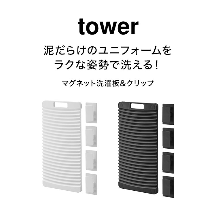 山崎実業 マグネット洗濯板&クリップ タワー 公式 tower 10553 10554 ホワイト ブラック 手洗い ウォッシュボード