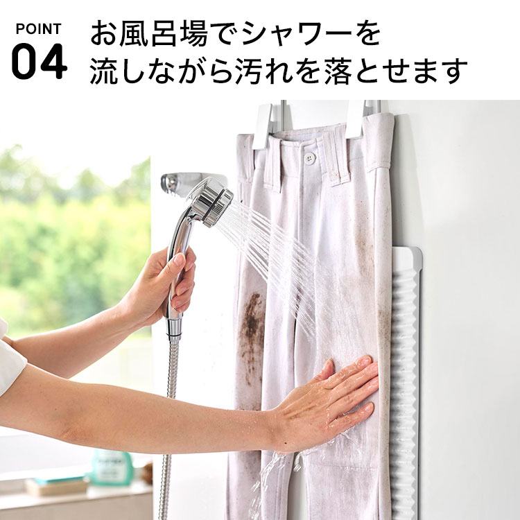 お風呂場でシャワーを流しながら汚れを落とせ、タワシを使えば衣類の前後を同時に洗えるので、より効率よく汚れを落とせます。