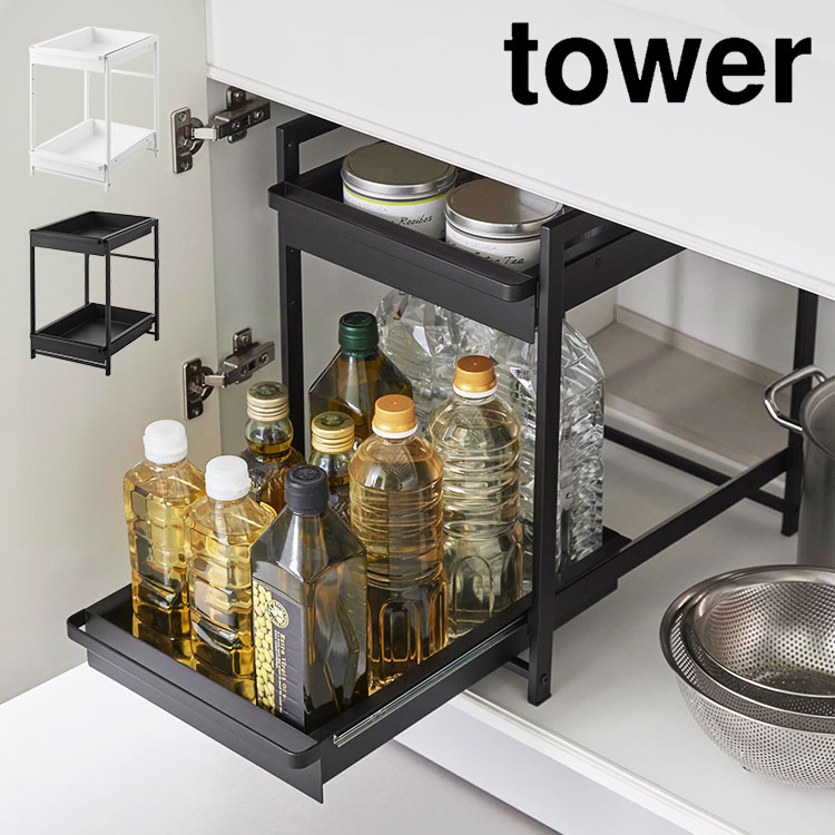 シンク下スライドラック 2段 山崎実業 タワー スライド 引き出し ラック シンク下収納 収納棚 tower キッチン収納 調味料 ボトル 収納 キッチンラック 高さ調節 戸棚収納 ストッカー 頑丈 丈夫 洗面台下 シンク下収納ワゴン 隙間収納 コンロ下 白 黒 ホワイト ブラック スタイリッシュ スライドラック 高さ調節 引き出しタイプ 整理整頓 台所収納 便利 収納ラック 棚 二段 大容量 1460 1461 耐荷重10kg シンプル おしゃれ 隙間収納 コンロ下収納 一人暮らし ひとり暮らし 1人暮らし 二人暮らし ふたり暮らし 2人暮らし 新生活 yamazaki 山実 やまじつ ヤマジツ やまざきじつぎょう たわー towerシリーズ ブランド インテリアブランド
