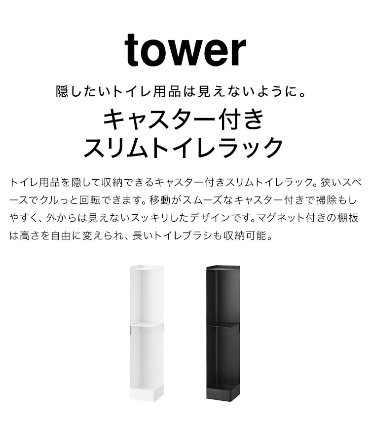 キャスター付きスリムトイレラック 山崎実業 タワー トイレットペーパーホルダー トイレラック トイレコーナーラック トイレグッズ スタンド スリム 掃除道具 トイレ用品 収納 tower 収納ラック 棚 隠せる 目隠し スリム 角 省スペース おしゃれ シンプル ホワイト ブラック 白 黒 スタイリッシュ モノトーン 1489 1490 隙間収納 トイレ収納 完成品 公式 薄型 コーナー対応 コンパクト ストッカー 飾り棚 トイレ収納棚 トイレブラシ 収納 隠す スリムラック 洗面所 サニタリー 新生活 スチール 丈夫 便利 スマホスタンド 移動 キャスター付き 薄型収納 薄型ラック 薄型棚 可動棚 可動ラック サニタリートイレラック サイドラック 整理整頓 整理用品 スペース 有効活用 マンション アパート 一人暮らし ひとり暮らし 1人暮らし 二人暮らし ふたり暮らし 2人暮らし ファミリー 家族 一戸建て 戸建 賃貸 yamazaki 山実 やまじつ ヤマジツ やまざきじつぎょう たわー towerシリーズ ブランド インテリアブランド