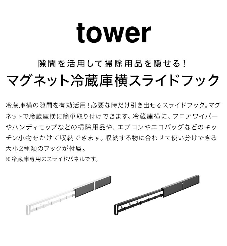 山崎実業 マグネット冷蔵庫横隠せるスライドフック タワー 1861 1862 tower 隙間収納 掃除 収納 フック付き ラック 引っ掛け 壁掛け 磁石 壁面 浮かせる 隠す 収納 掃除用品 キッチン 台所 グッズ フロアワイパー ハンディモップ エプロン エコバッグ 引き出し 簡単設置 スライドパネル 引き出せる ハンドル 整理整頓 スマート 隠れる 便利 すっきり コンパクト 省スペース 磁力 強力 貼り付け スリム ブラック ホワイト シンプル 新生活 白 黒 着脱式フック 10代 20代 30代 40代 50代 60代 70代 80代 息子 娘 孫 女性 女子 レディース 男性 男子 メンズ 父 母 おかあさん おとうさん パパ ママ シニア おじいちゃん おばあちゃん お爺ちゃん お婆ちゃん 祖父 祖母 じいじ ばあば バースデー 誕生日 プレゼント ギフト お祝い お返し 粗品 景品 送別会 イベント 母の日 父の日 おしゃれ オシャレ お洒落 シンプル かっこいい カッコいい カッコイイ