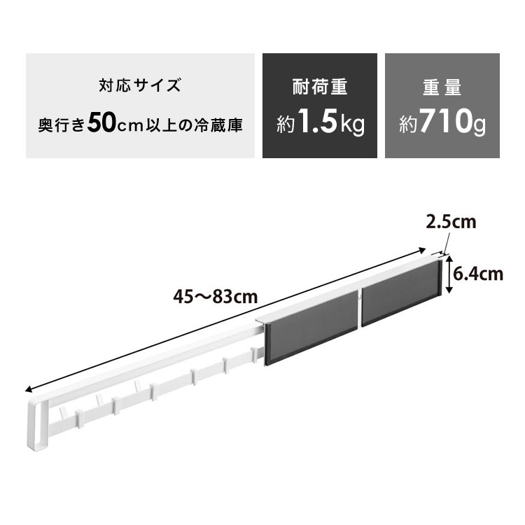 奥行き50cm以上の冷蔵庫に取り付け可能。