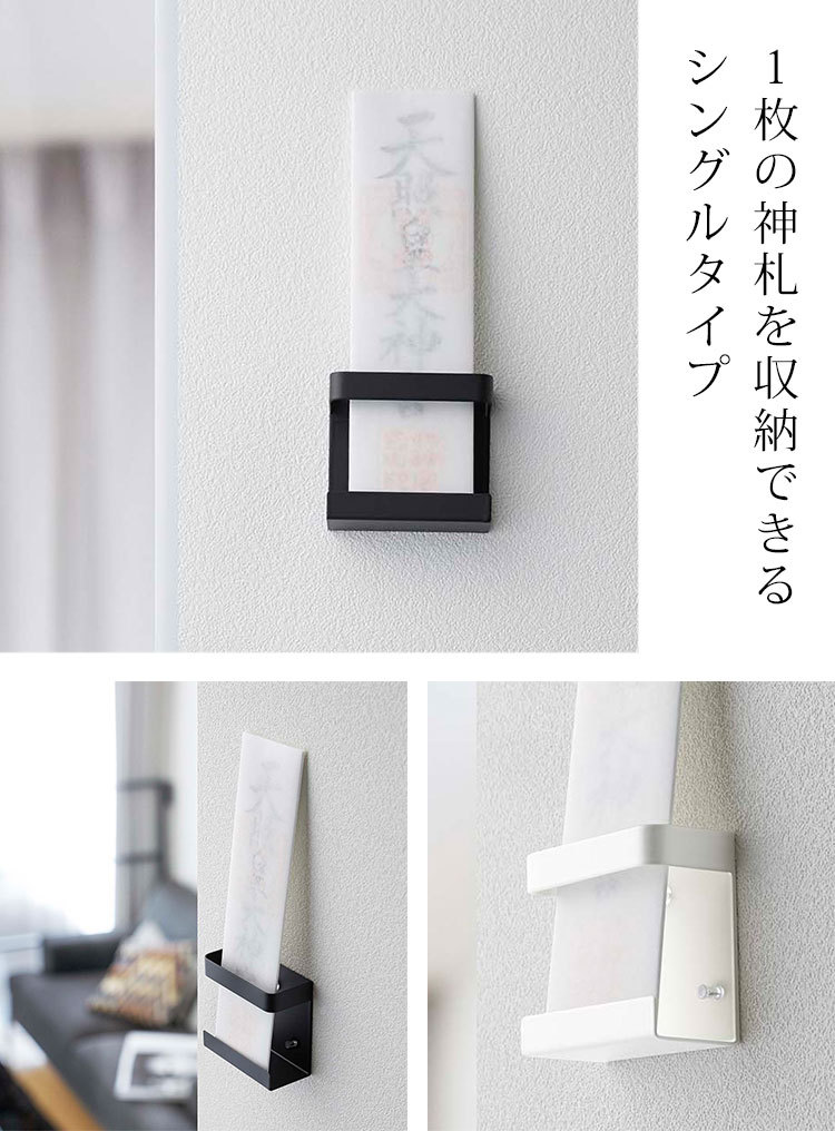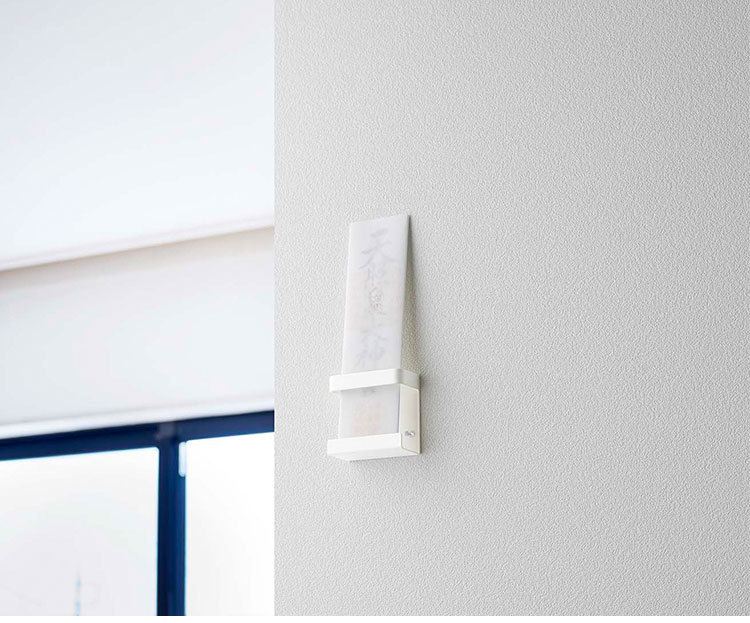 押しピンで固定して設置できる、towerの神札ホルダー シングル。神棚がないご家庭で置き場に困っていた神札を省スペースに収納することができます。インテリアを邪魔しないシンプルデザインなのも◎
