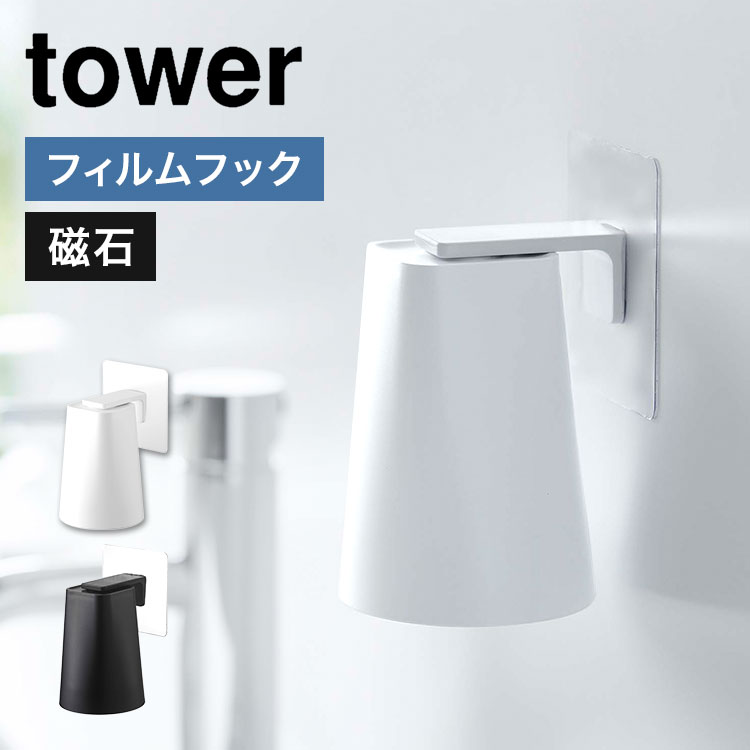 歯磨きコップ 山崎実業 フィルムマグネットタンブラー タワー tower 壁面 収納 歯みがきコップ コップホルダー コップ立て フィルムフック 磁石 5487 5488
