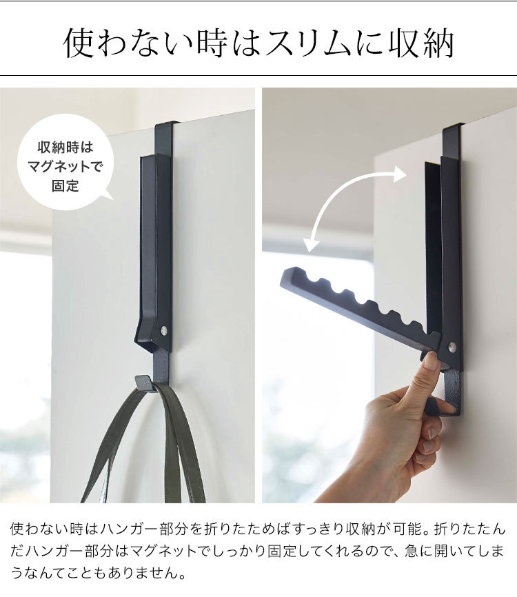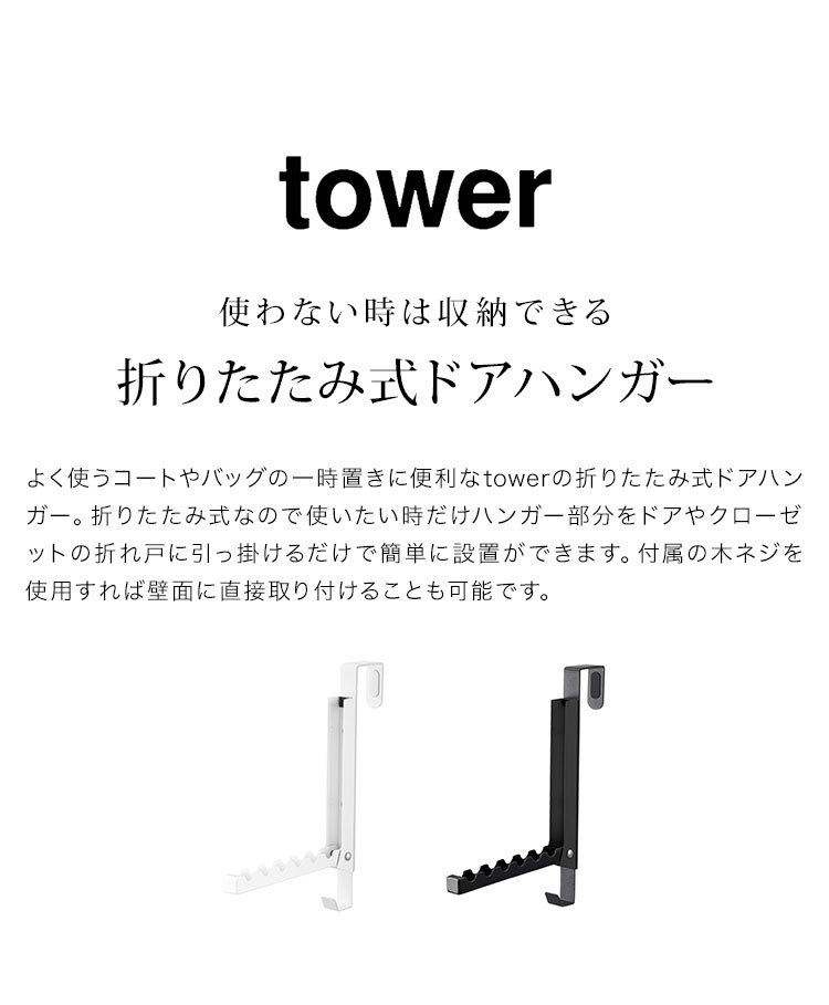 ドアハンガー 山崎実業 タワー tower ドアハンガーフック 折りたたみ式 折れ戸 開き戸 扉 収納 スリム コート クローゼット シンプル 吊り下げ 白 黒 5514 5515