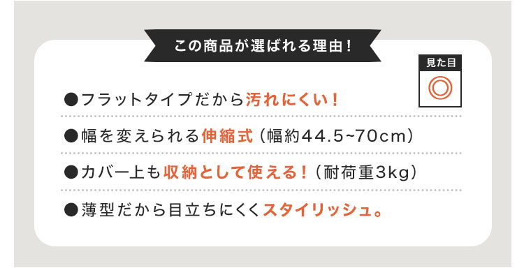 幅は伸縮するので設置するコンロやIHに合わせて調節可能です。