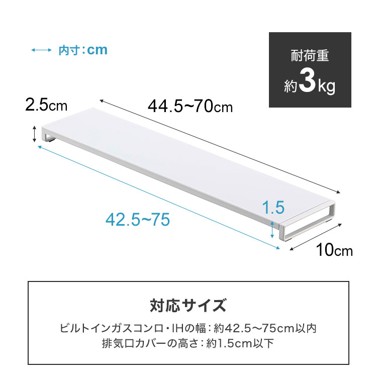 内寸:約幅42.5〜75×奥行10×高さ1.5cm
