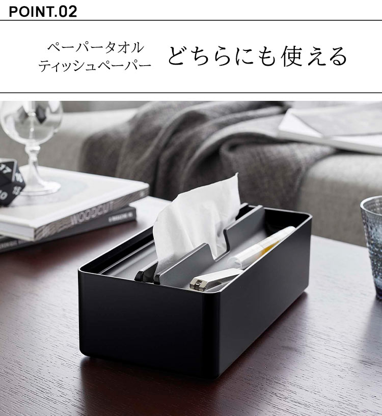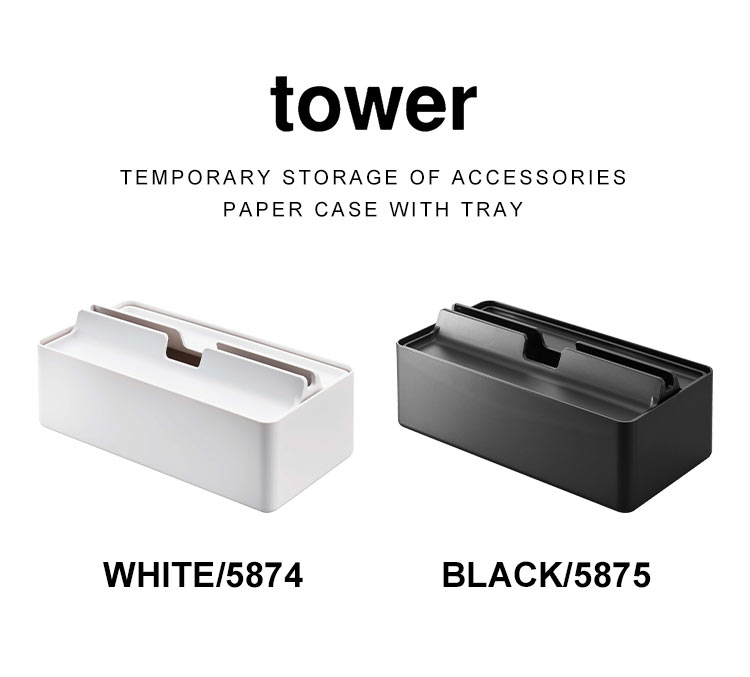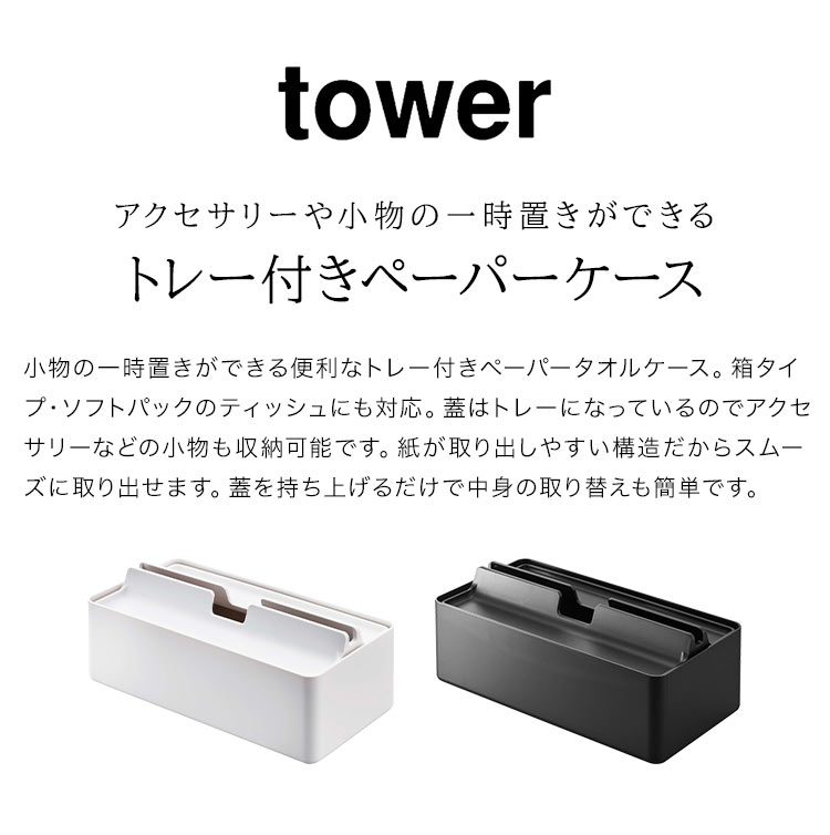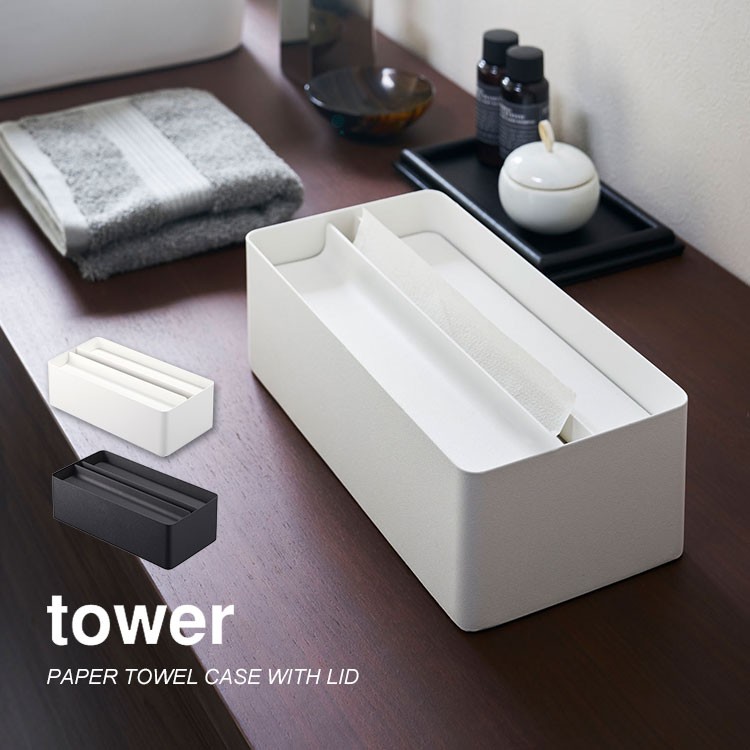山崎実業 トレー蓋付きペーパータオルケース ホルダー タワー tower 蓋つき 5874 5875 ボックスティッシュケース カバー アクセサリートレー 小物入れ 送料無料