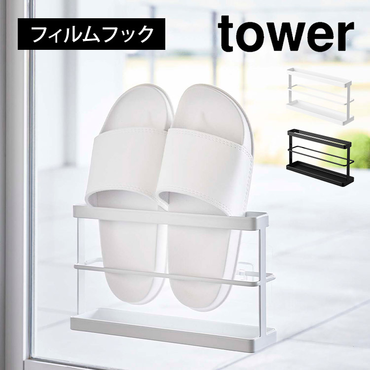 ツーウェイベランダスリッパラック トレー付き タワー 山崎実業 7628 7629 tower ベランダスリッパ収納 スリッパホルダー スリム 省スペース 窓 ガラス 壁