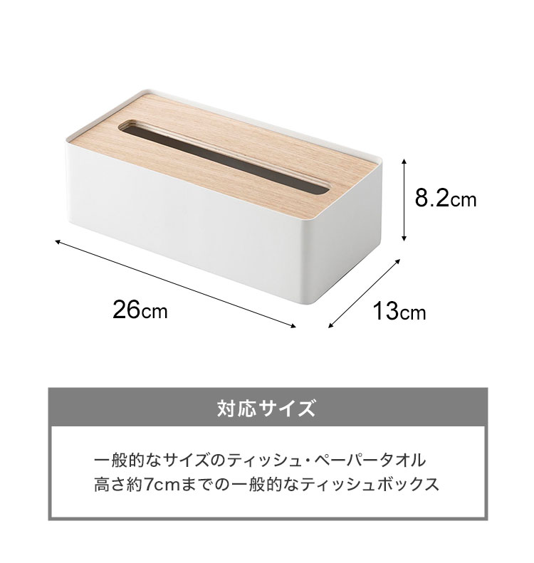 一般的なサイズのティッシュ・ペーパータオル、高さ約7cmまでの一般的なティッシュボックス