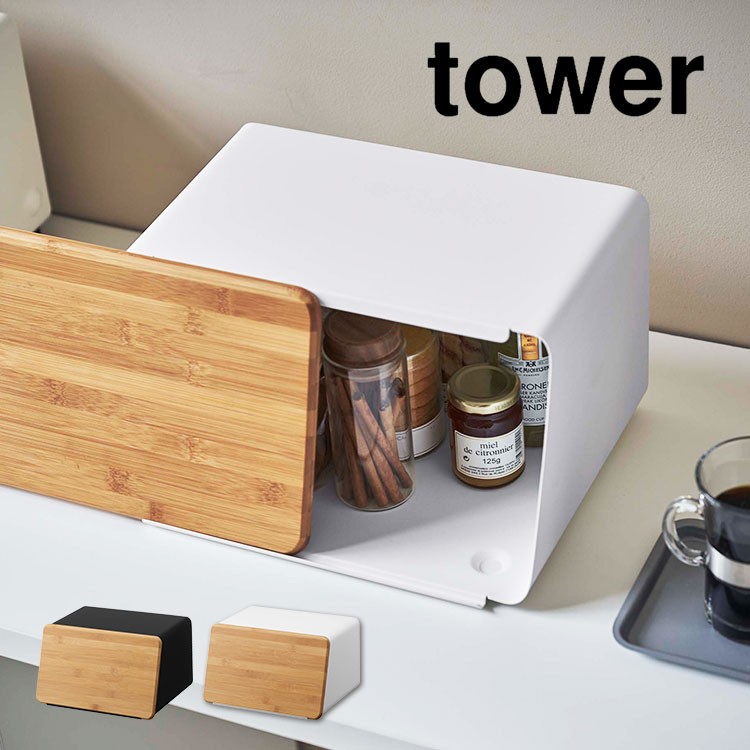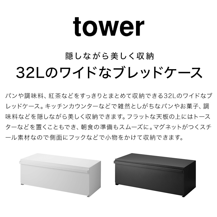 ブレッドケース ワイド タワー 山崎実業 3022 3023 tower パンケース パン入れ 調味料入れ 保存 大容量 ラック 棚 ボックス シンプル おしゃれ 無地 白 黒