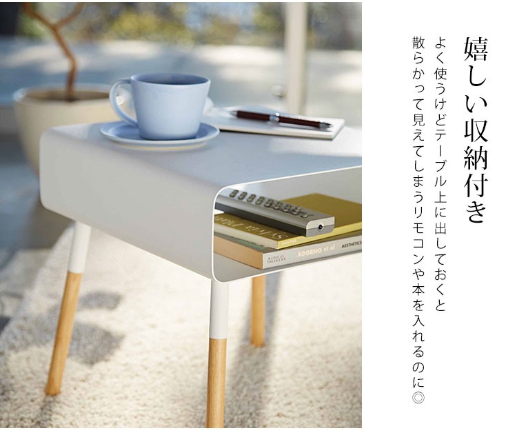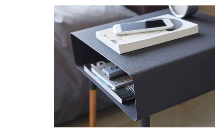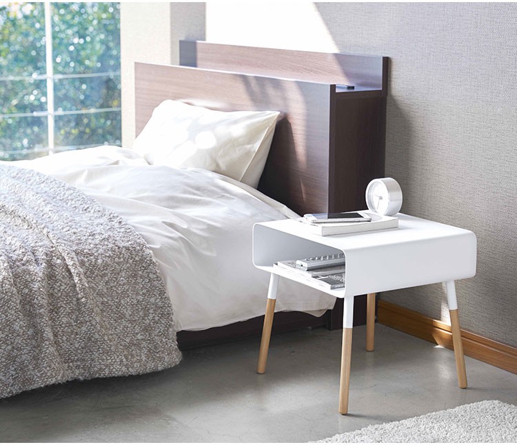 ベッドやソファサイドに合わせやすい◎圧迫感を感じさせないplianのローサイドテーブルどんな部屋にも合わせやすいシンプルデザイン。収納付きなので読みかけの雑誌やリモコンなどの収納にも便利です。