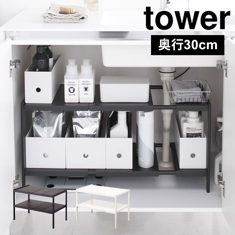 伸縮シンク下ラック キッチン 整理棚 山崎実業 タワー 伸縮棚 2段 シンク下 ラック 棚 キッチン棚 tower 収納 洗面台下 幅調整 シンプル 送料無料 4948 4949