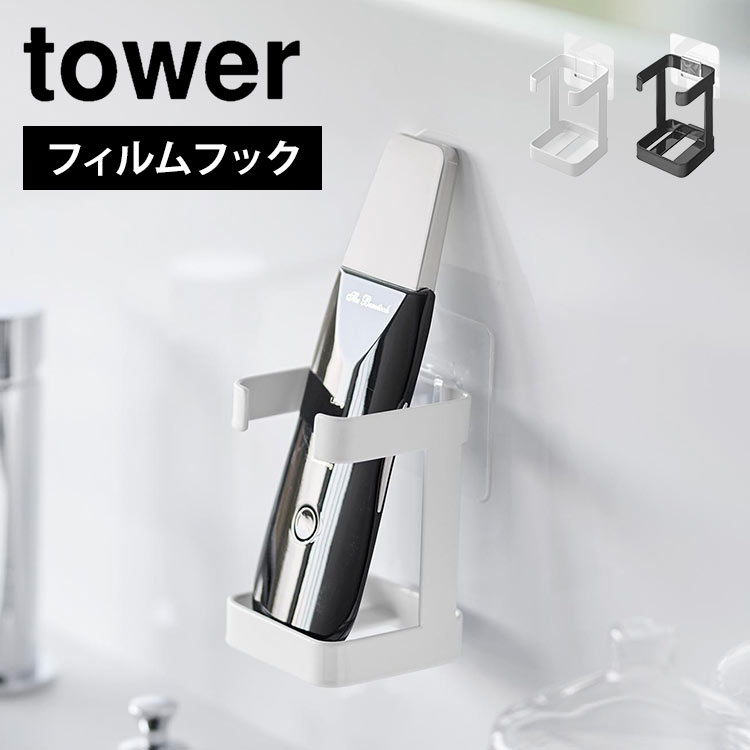 シェーバー 収納ケース ラック 山崎実業 フィルムフック ラック タワー tower 洗面台 吊り下げ 壁面 鏡 貼り付け 髭剃り ホルダー 1670 1671
