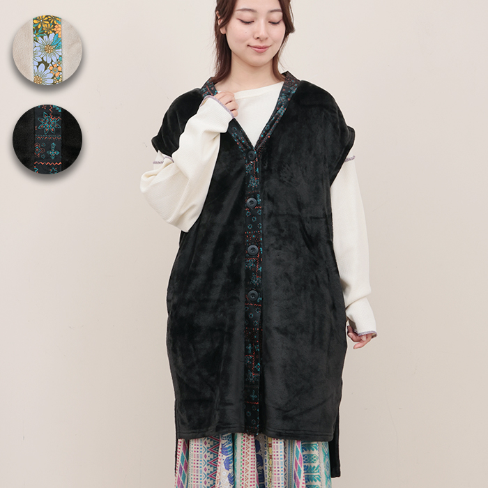 シエスタあったかもこもこベスト / ルームウェア 眠活 部屋着 防寒 羽織 羽織り ベスト ボタン ワンマイルウェア パジャマ レディース 秋 冬 安眠 睡眠
