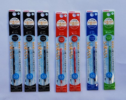 ゼブラ ジェルボールペン替芯0.5mm 黒3本/赤2本/青1本/緑1本 RNJK5-BK/R/BL/G 4色7本組み