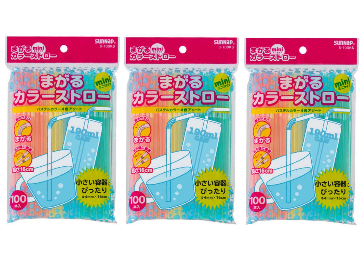 まがる ストロー ミニサイズ カラーアソート 16cm 300本 (100本×3個)セット S-100KS