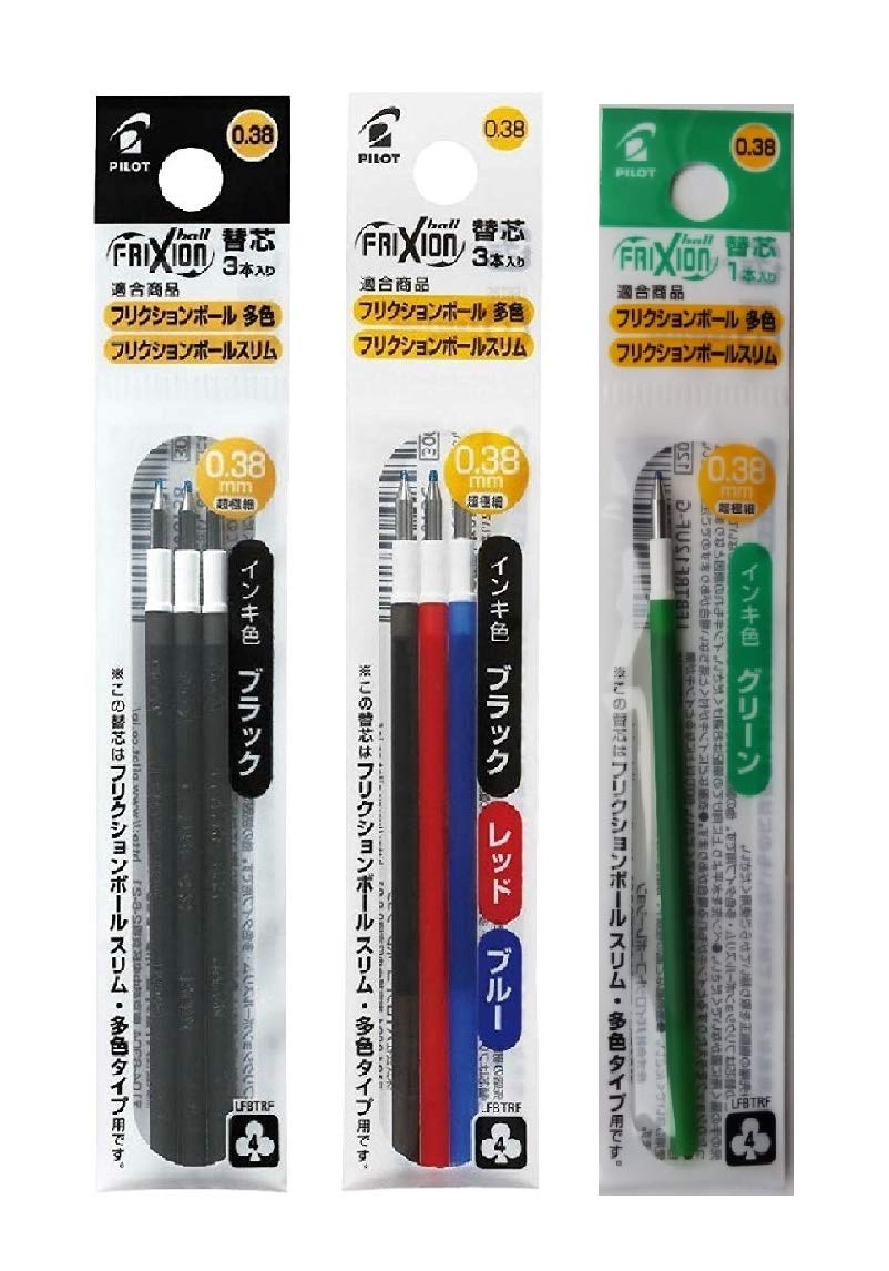 パイロット フリクションボールスリム用リフィル0.38mm 黒+3色+緑 LFBTRF30UF-3B+3C+12UF-G 3パック組み