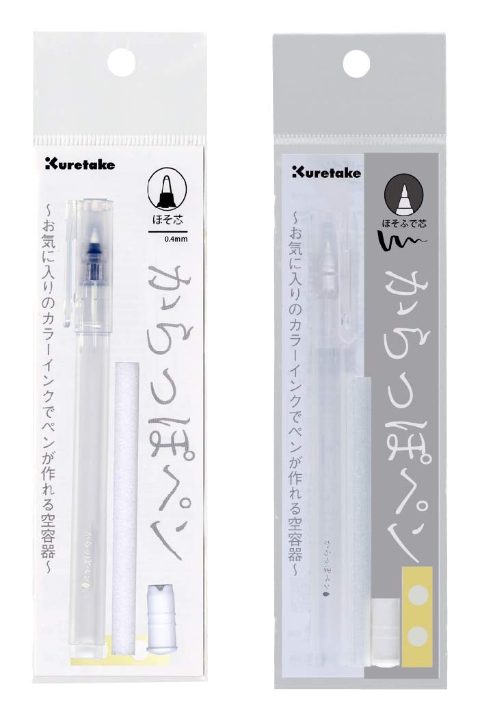 呉竹 からっぽペン カラーインクでペンが作れる空容器 ほそ芯+ほそふで芯 ECF160-401+402 2種2本組み