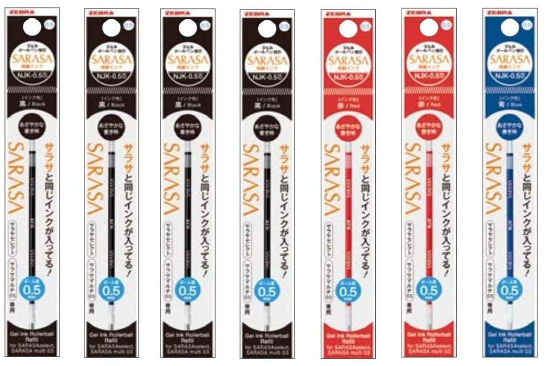 ゼブラ ジェルボールペン替芯0.5mm 黒4本/赤2本/青1本 RNJK5-BK/R/BL 3色7本組み