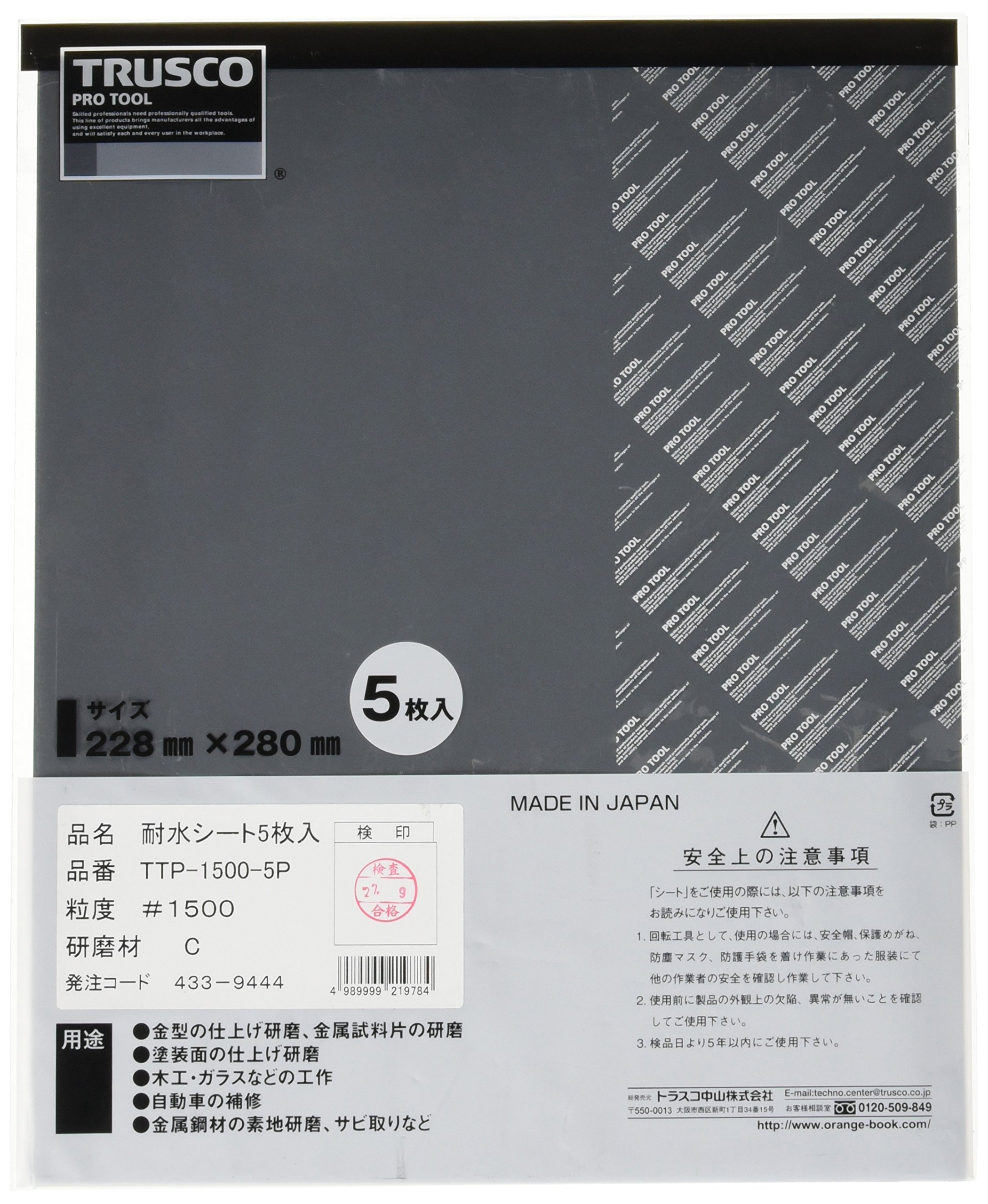 TRUSCO(トラスコ) 耐水ペーパー 228X280 #1500 5枚入 TTP15005P