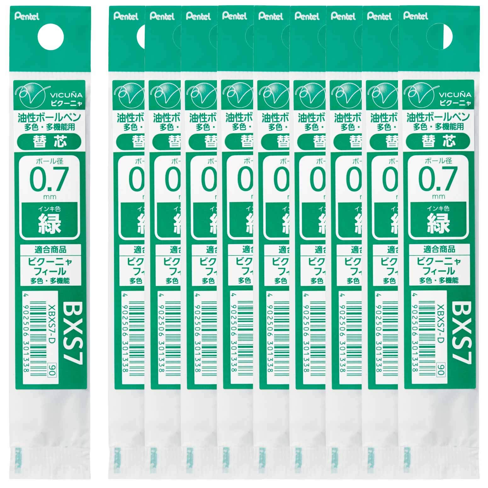 ぺんてる ボールペン替芯 XBXS7-D 0.7緑 10本パック