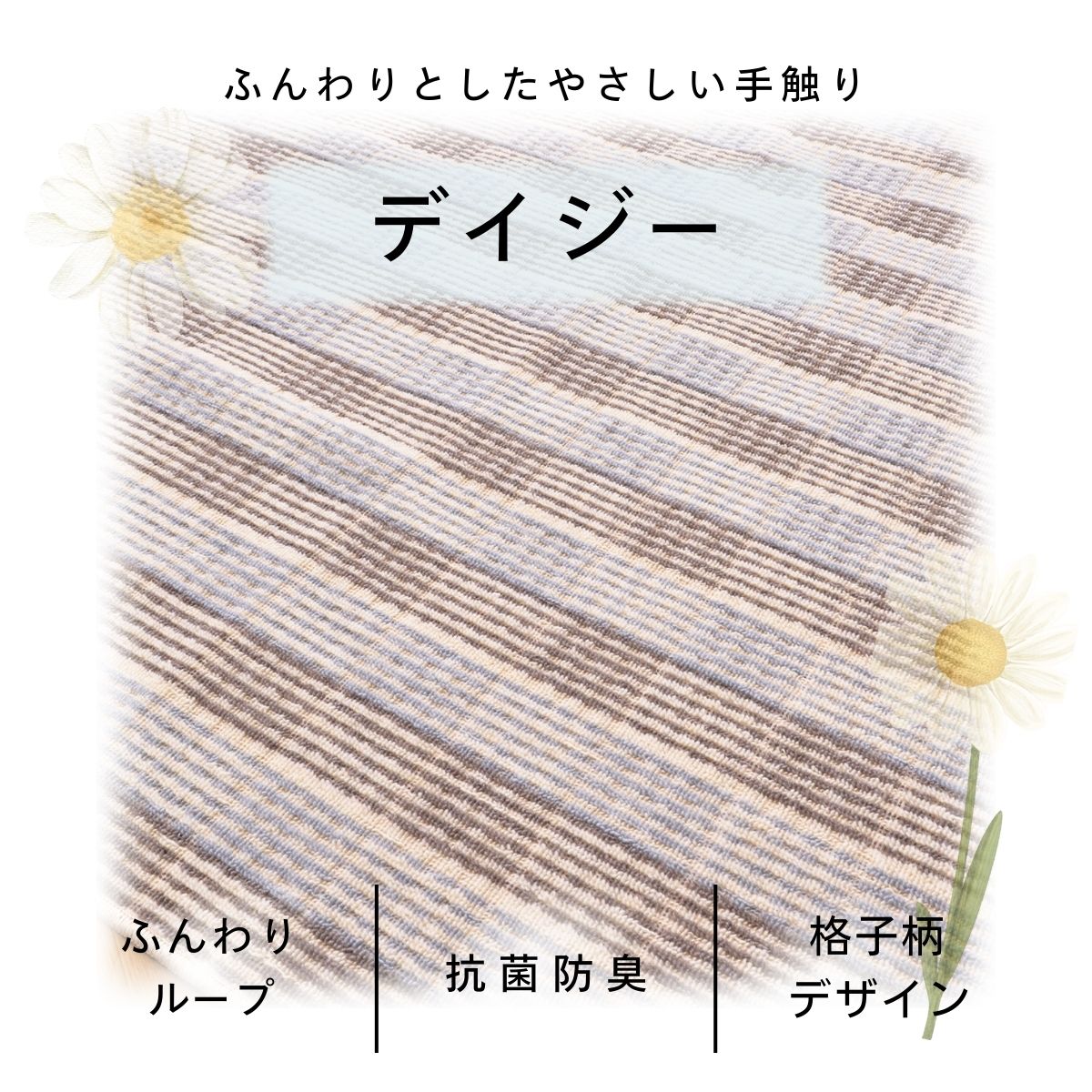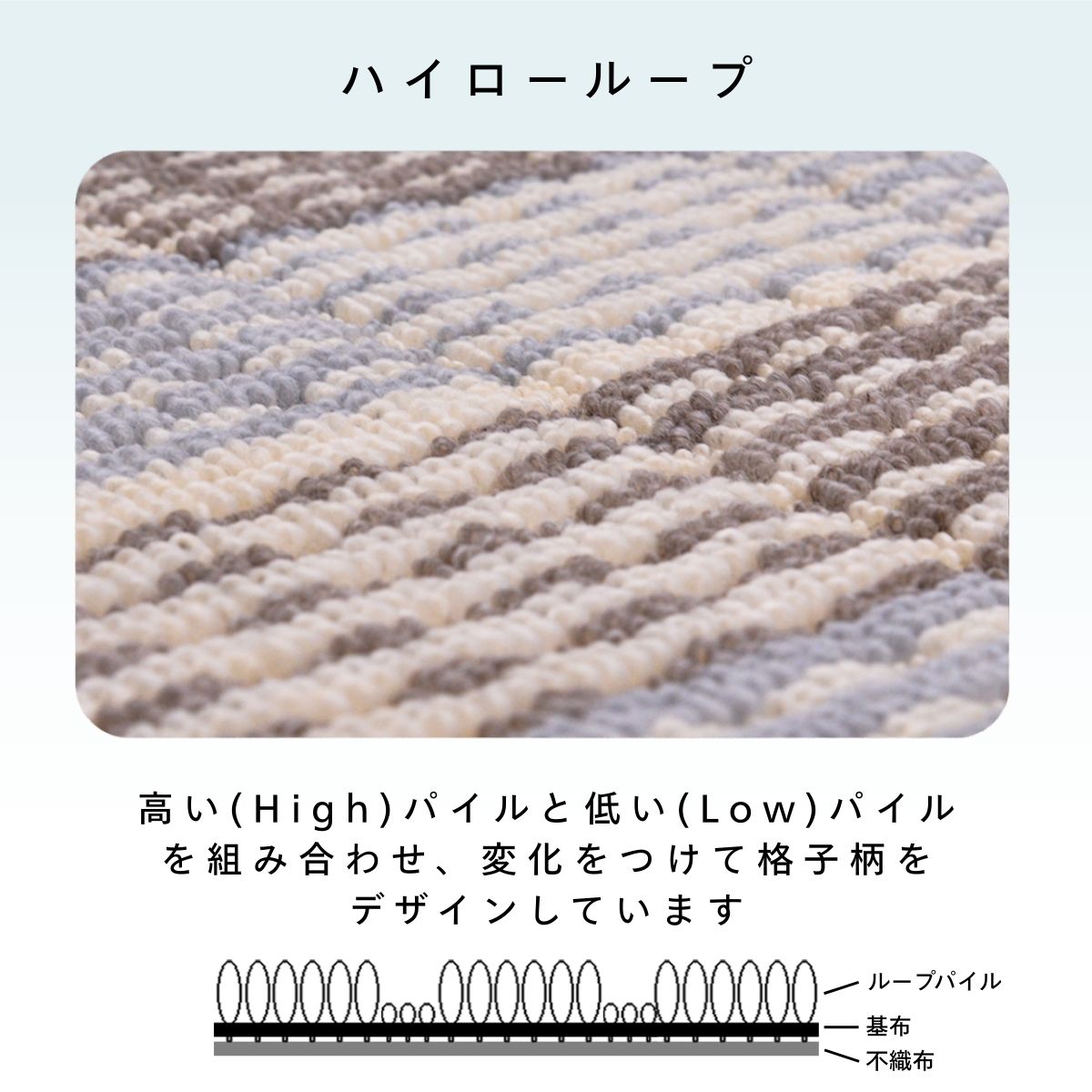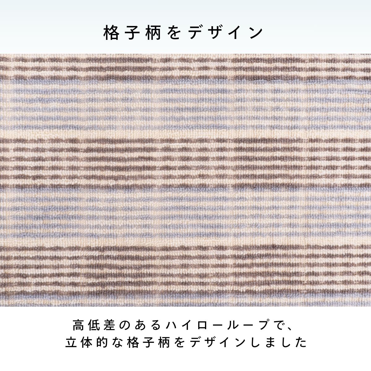 高いパイルと低いパイルを組み合わせ、変化をつけて格子柄をデザインしています