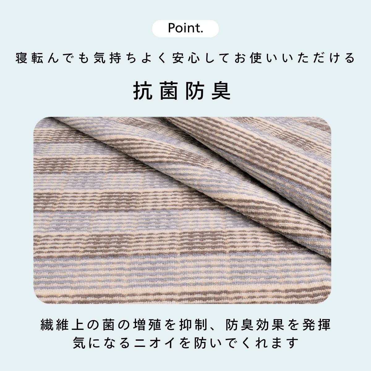 繊維上の細菌の増殖を抑制し、防臭効果を示します。