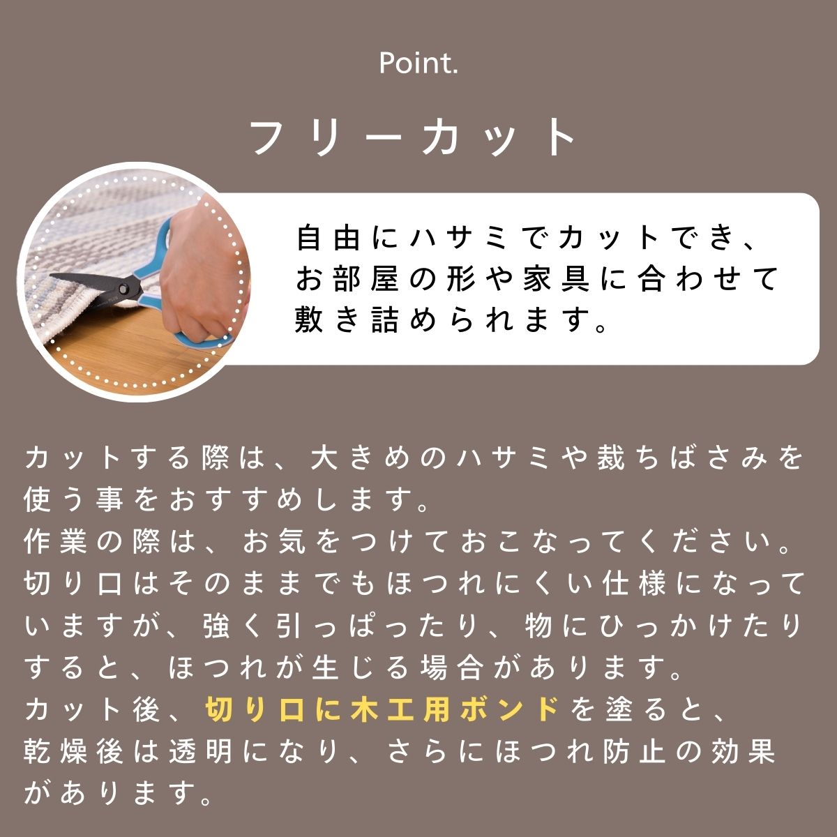 お部屋の形に合わせてはさみでカットできます。