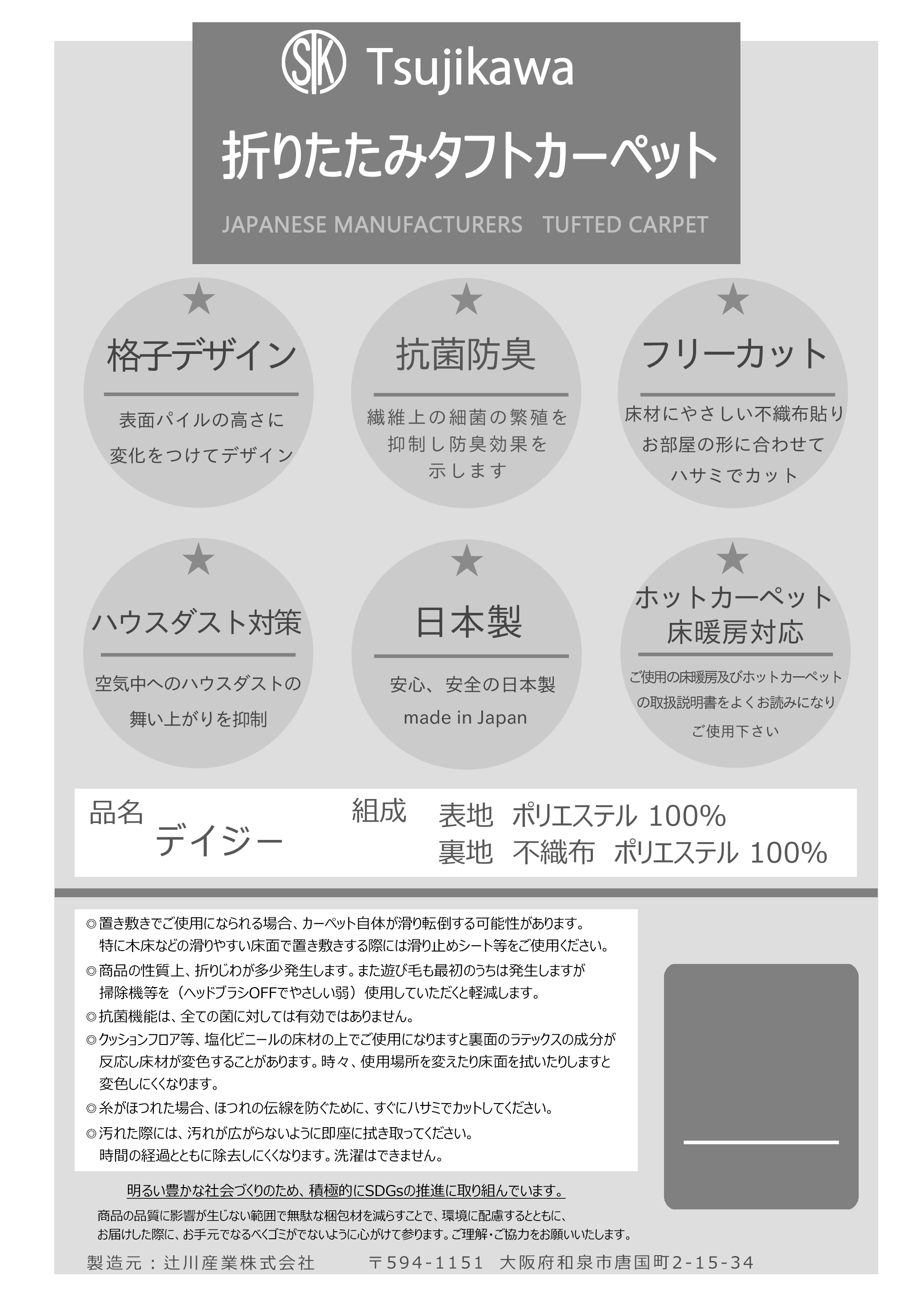 置敷きに使用される場合はスベリ止めシート等をご使用ください。
