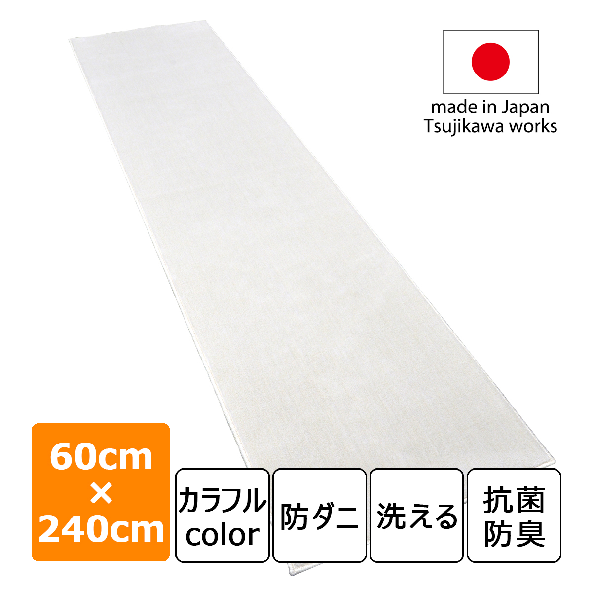 キッチンマット 日本製 防ダニ 抗菌防臭 洗える ヴォーグマット 60×240cm アイボリー 風水 辻川産業株式会社