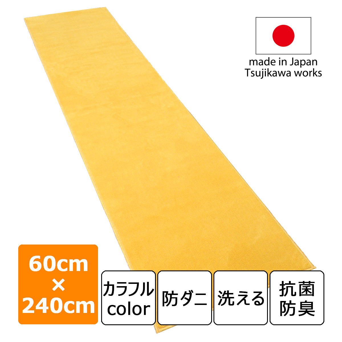 キッチンマット 日本製 防ダニ 抗菌防臭 洗える ヴォーグマット 60×240cm イエロー 風水 辻川産業株式会社
