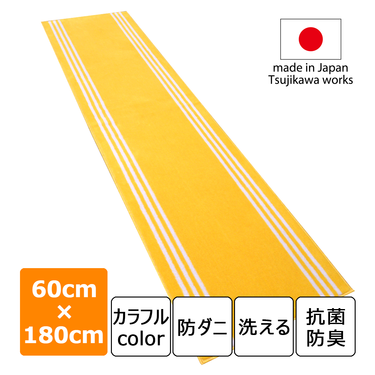キッチンマット 日本製 防ダニ 抗菌防臭 洗える ヴォーグマット 60×180cm イエロー×ホワイトライン 風水 辻川産業株式会社