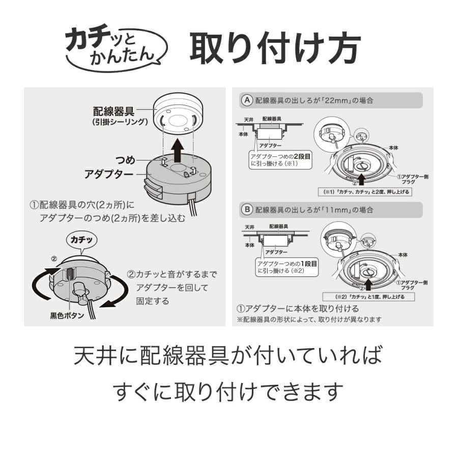 ご注意:掲載写真では天井とシーリングの隙間はないとみていますが、実際引掛シーリグの厚さにより天井との間に隙間が少しでできます。