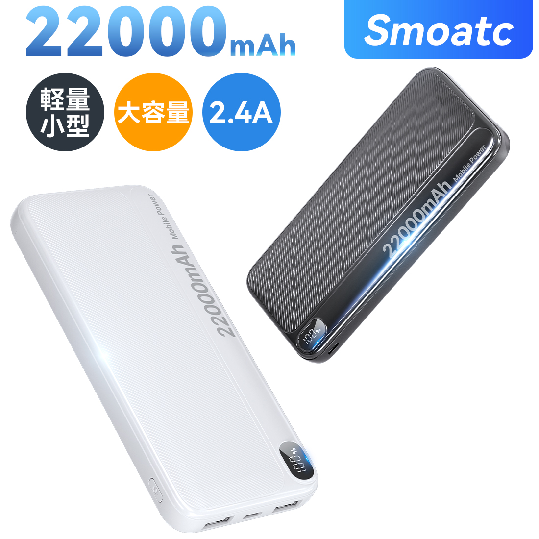 モバイルバッテリー 22000mAh大容量 3台同時充電 小型 軽量 携帯充電器 充電器 iPhone/Type-C 急速充電 LEDデジタル表示 万博 お出かけ 防災 Android PSE認証済