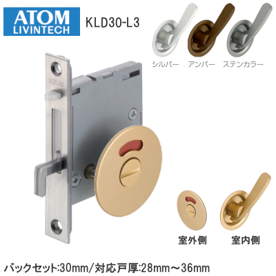 ケース鎌錠 KLD30-L3 表示錠 戸厚28mm〜36mm バックセット30mm 引戸 鎌錠 引戸錠 レバータイプ ATOM アトムリビンテック