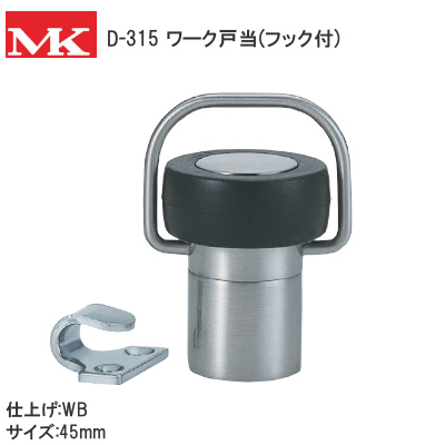 フック付 ワーク戸当 MK D-315 サテンシルバー 45mm 戸当り ドア ストッパー 木床 コンクリート床 兼用タイプ 戸当たり