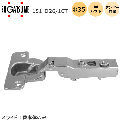 スガツネ工業 151-D26-10T LAMP 151シリーズ スライド丁番 カップ径φ35 ダンパー内蔵・半かぶせ 最大10mm 105度開き 取付ビス付 座金別売り