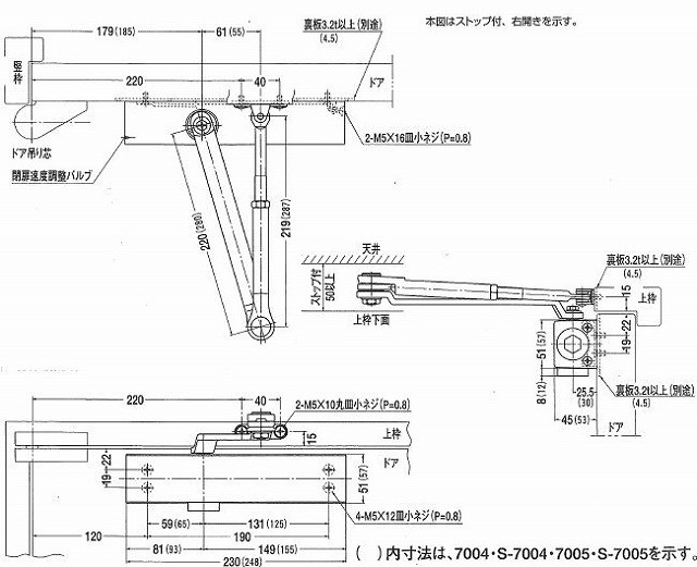 | 7000series 品番 | 適用ドア寸法 DW×DHmm | ドア重量 kg以下 | |||