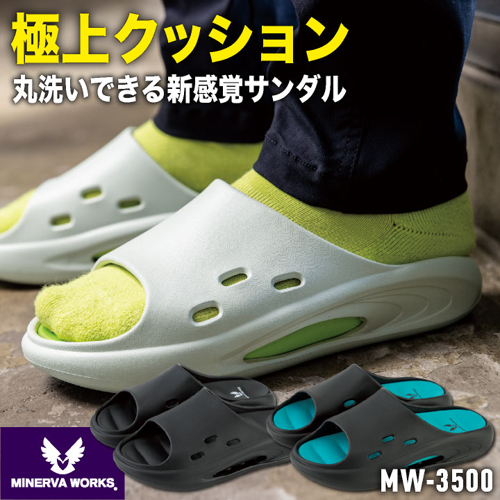 MINERVA WORKS MW-3500 リバウンドワークサンダル1.0 ふんわり極上クッションで、立ち仕事も歩行も快適サポート。 来客用の室内履きにもおすすめ。 ・モニターにより実際の色と多少ちがって見えることがあります。人気商品のため、商品在庫が欠品することがあります。
