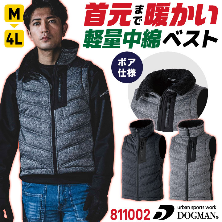 811002 DOGMAN 中国産業 フレックスライトネックウォーマーベスト 衿内側はボア仕様で寒い日でも首までしっかりと暖かい。 デザインと軽量性を兼ね備えた防寒ウェア。 ・モニターにより実際の色と多少ちがって見えることがあります。人気商品のため、商品在庫が欠品することがあります。