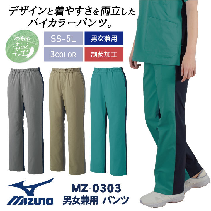 MZ-0303 ミズノ バイカラー スクラブパンツ MIZUNO 小松マテーレ 病院 医療用白衣 チームスクラブ 白衣 男性 女性 兼用 ストレッチ 制菌 制電 両脇ポケット チトセ