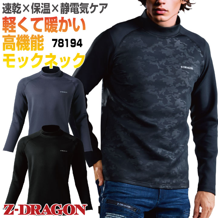 78194 自重堂 長袖モックネックシャツ 秋冬 おすすめ ブラック チャコールグレー ブラックカモフラ SS S M L LL EL ・モニターにより実際の色と多少ちがって見えることがあります。人気商品のため、商品在庫が欠品することがあります。