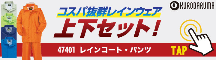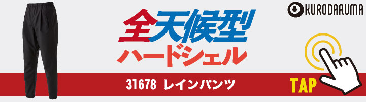 47412 KURODARUMA 雨とムレから働く人を守るレインパンツ! 優れた防水性と快適な透湿性。 耐久性が高いリップストップ生地。