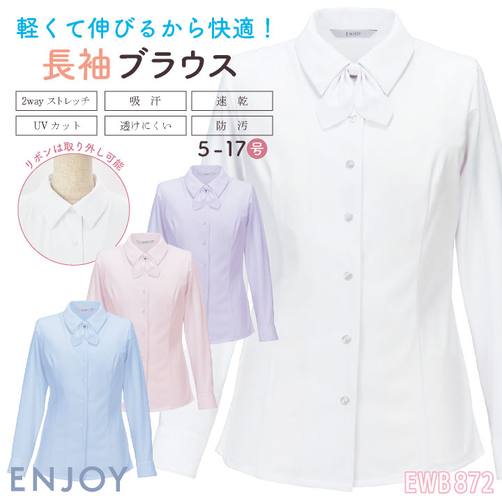 レディース 長袖シャツ リボン付 透けにくい ストレッチ UVカット 吸汗速乾 事務服 オフィス 受付 事務 制服 ユニフォーム カーシーカシマ ENJOY kk-ewb872