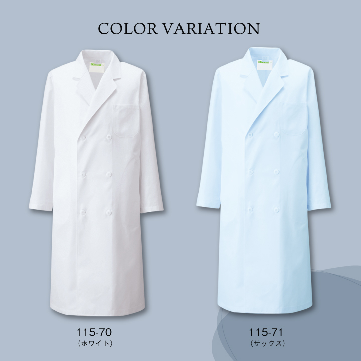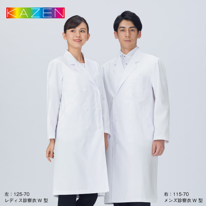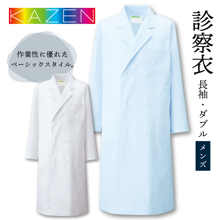 白衣 メンズ 実験 診察衣 研究用 アプロン 安い 人気 ダブル 長袖 カゼン 115-70 115-71ドクターコート 男性 KAZEN 医療用 病院 医師 実験用白衣 kz-115p