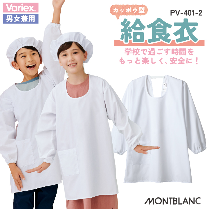 住商モンブラン 割烹着 カッポウ型給食衣 児童用長袖 給食エプロン 小学生 中学生 春夏 秋冬 白衣 メンズ レディース 抗ウイルス 学校給食 おしゃれ sm-pv401-2