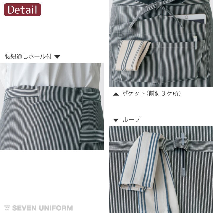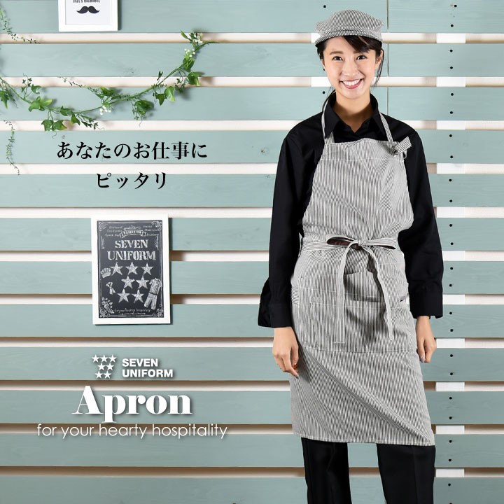 CT2386 エプロン 無地 SEVEN UNIFORM レストラン カフェエプロン 男性用 女性用 男女兼用
