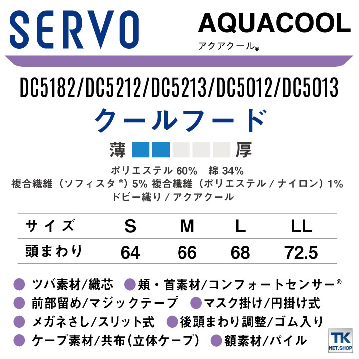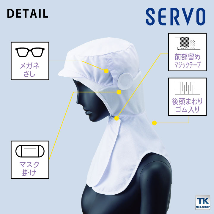 SERVO ケープ付 メガネ差し マスクかけ 暑さ対策 抗菌 制電 吸汗 速乾 男女兼用 DC5182 DC5212 DC5213 DC5012 DC5013
